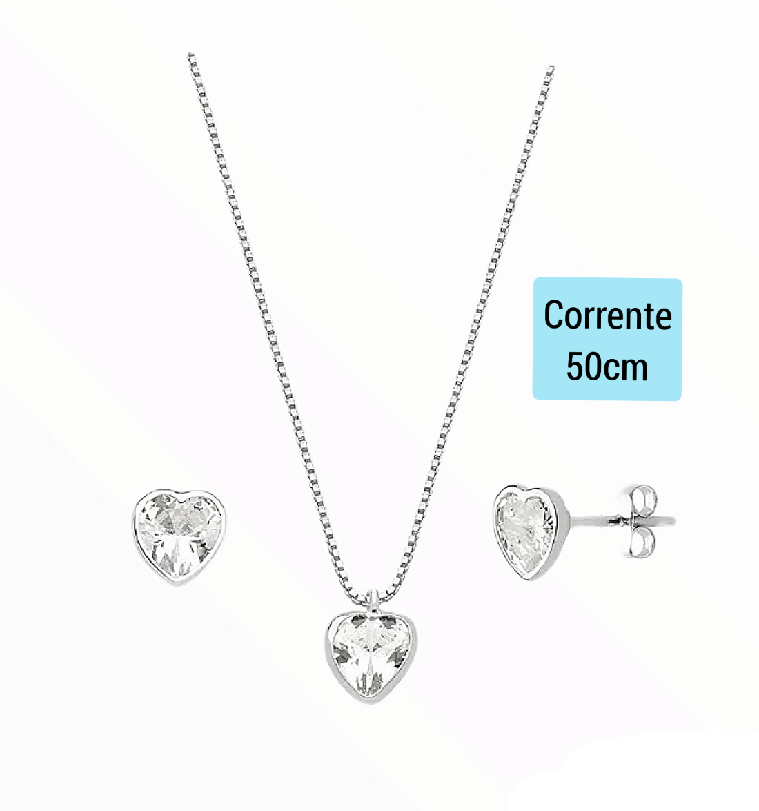 Conjunto Com Corrente Veneziana, Brinco e Pingente de Zirconias, Prata 925 Original.