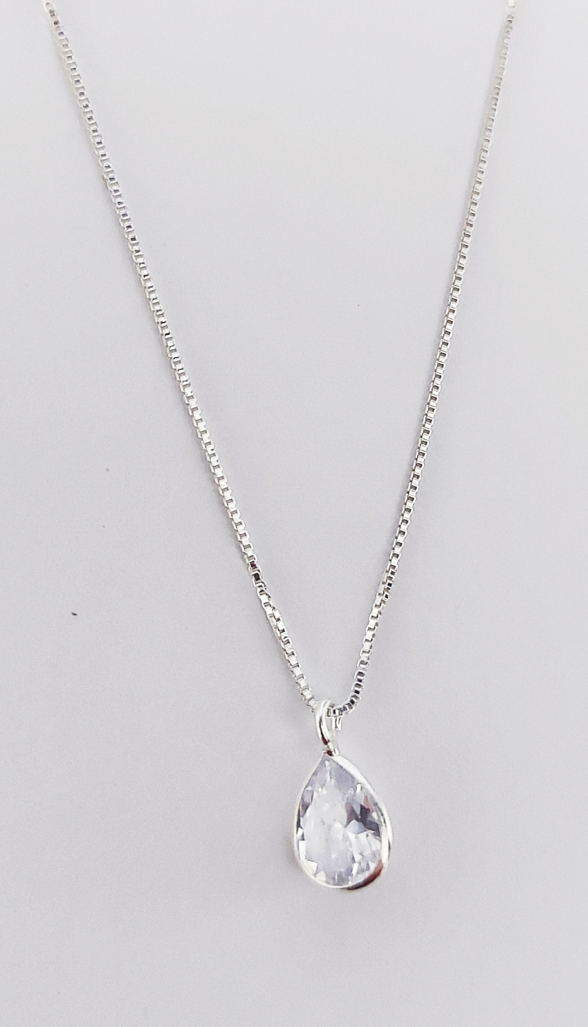 Corrente Veneziana 45cm Diamantada com Pingente Gota de Zirconia Natural Prata de Lei 925 Original.