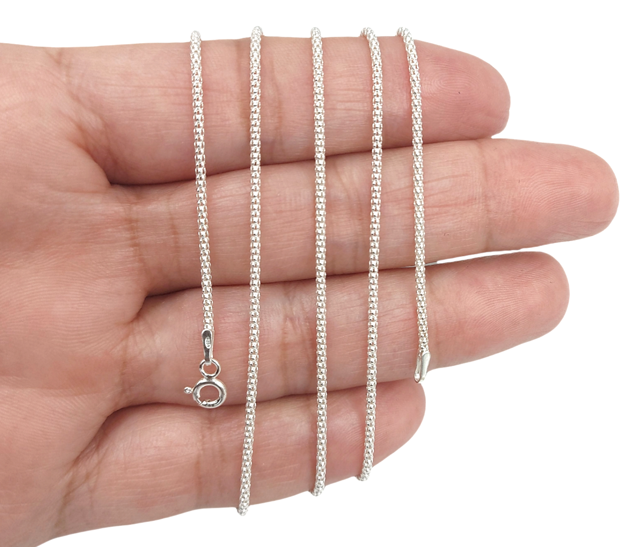 Linda Corrente Pipoca 60cm, maciça e resistente, Prata 925 Original.