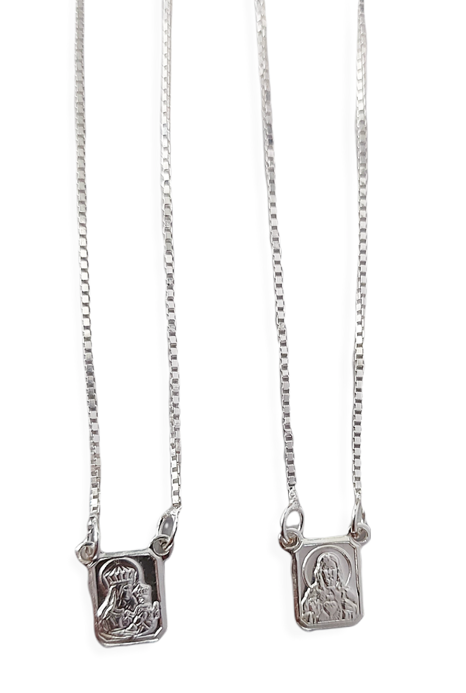 Escapulário Tradicional, medalha Sagrado Coração de Jesus e Nossa Senhora do Carmo, prata de lei 925.