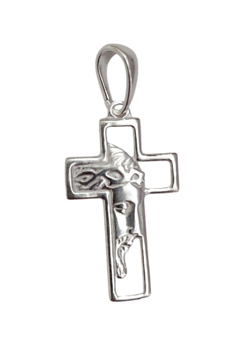 Pingente Cruz Face de Cristo modelo Vazado com alto relevo, maciço e resistente, Prata Original teor 925.
